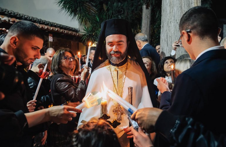 Sharing the flame of the Resurrection.