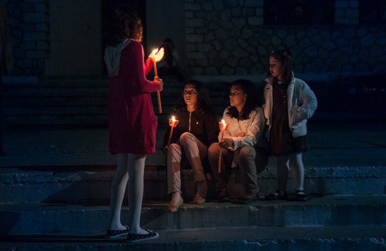 Every Greek child stays up late to light a candle at Midnight Mass on Easter Saturday.