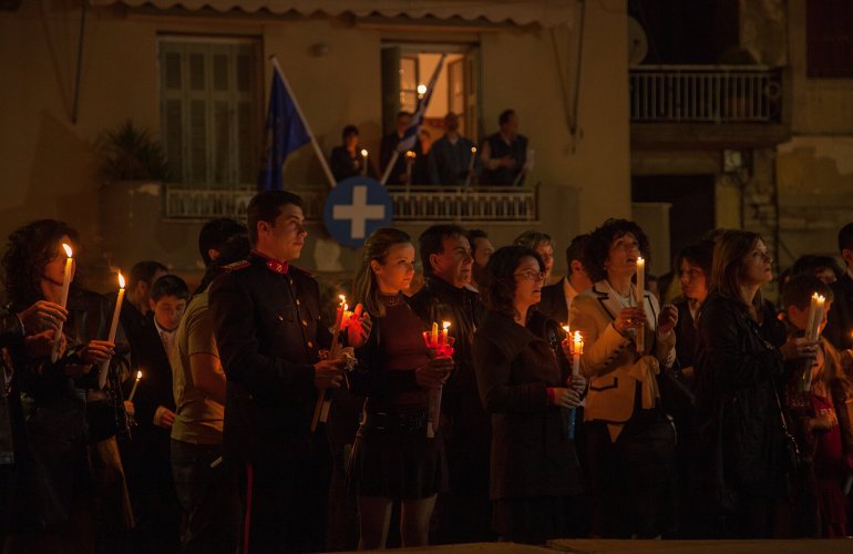 The one spectacle you won’t want to miss takes place on Good Friday. Called the Epitaphios, it begins around 9 pm. During the day, women in each parish decorate a wooden bier as a symbol of Christ’s coffin. They cover it with fresh flowers, producing works of art. In the evening, the faithful gather at the church. Carrying a beeswax candle, they walk around the neighbourhood together, behind the priest and the pallbearers who carry the holy bier topped with an icon of Christ. As the solemn procession moves through the streets, sometimes merging with those from nearby churches, the followers sing a haunting Byzantine hymn that expresses the sorrow of the Virgin Mary on the death of her son. Mourners dressed in black queue up to kiss the coffin.